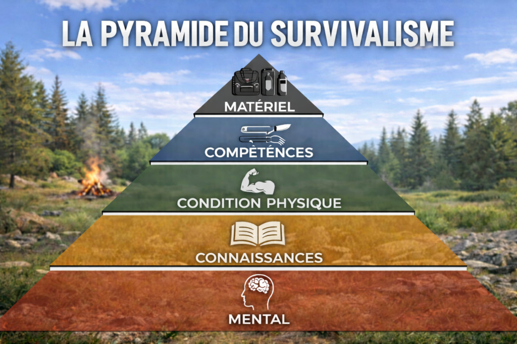 🧠 Le mindset du survivaliste, qui place la préparation mentale et la connaissance avant le matériel.